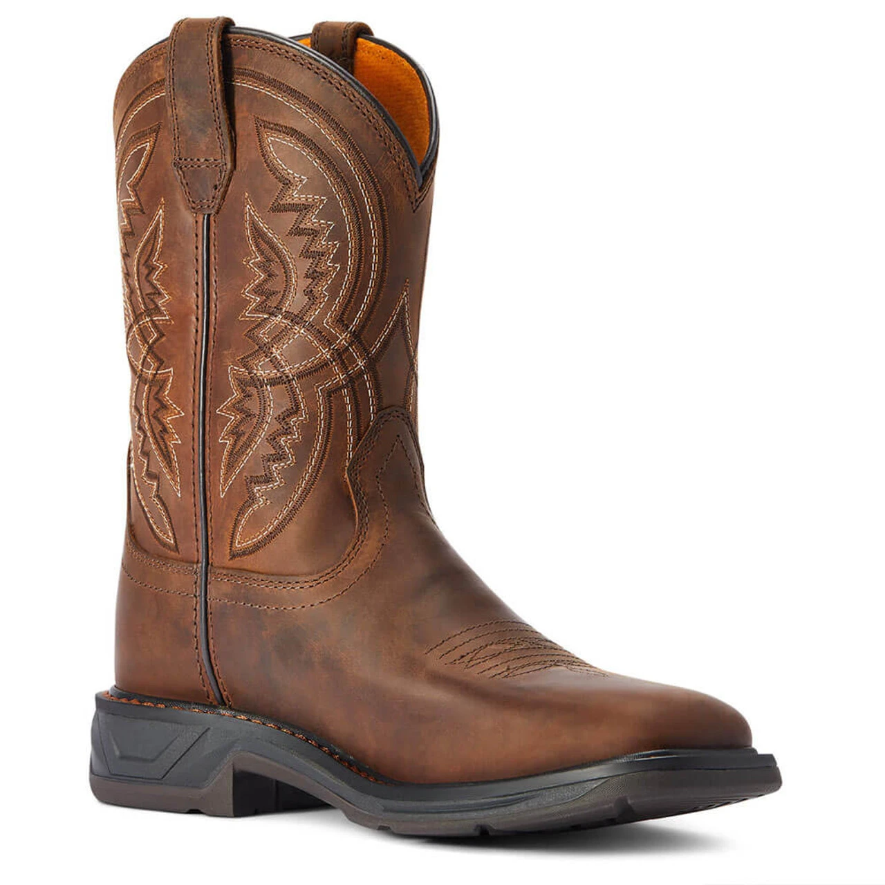 A pair of work boots just like dad, with a square toe and roper heel these WorkHog Pull-On boots will be great for any boy whether working on the farm, yard or going to work with dad. Built to last these boots have a Removable Wiggle Room insole that provides a half size of extra room for that growing boy, saving you from buying an new pair before they are ready to be replaced.Â