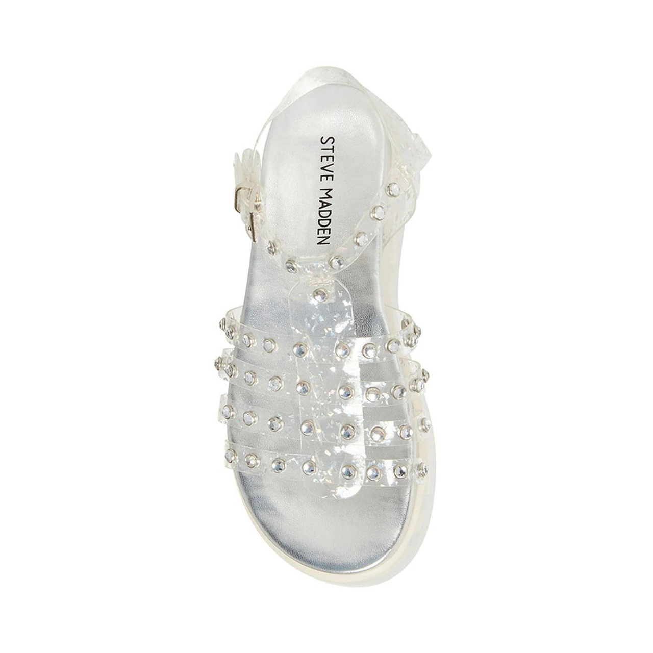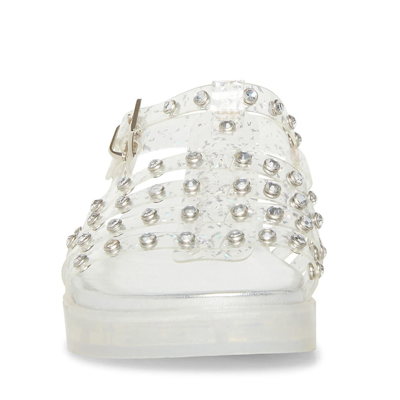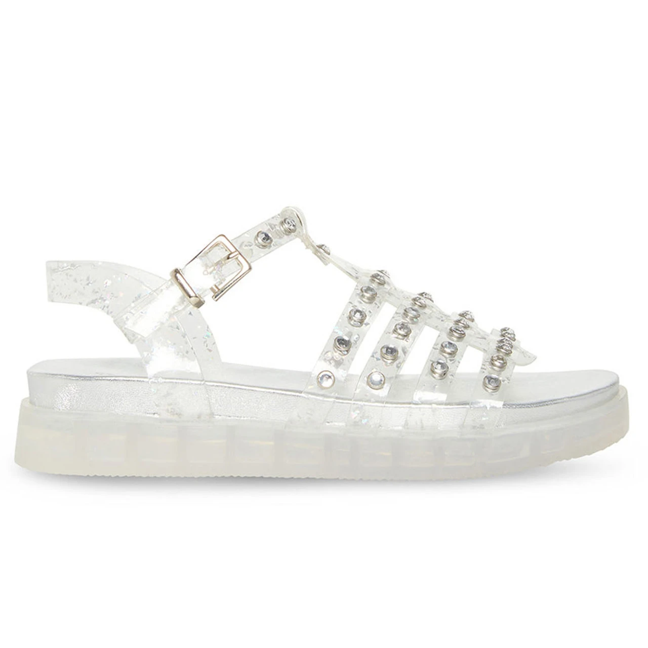 This Steve Madden classic JCELINE jelly sandal features fun studs along the straps for a pretty finish. This sandal sits on a synthetic flatform sole for ultimate comfort.