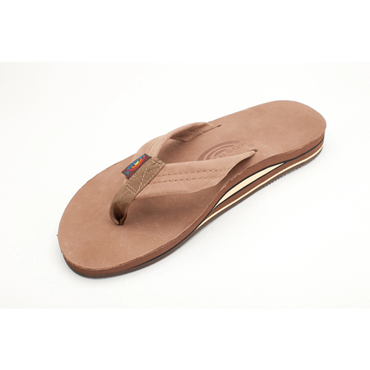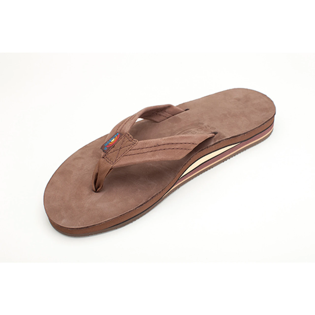 This men’s flip flop is made with a top sole of premier nubuck leather, and is embossed with the Rainbow® logo. The 1″ premier leather strap is double stitched, and the nylon toe piece is secured with a box X stitch, all sewn with bonded nylon thread. The layers are all triple glued for maximum durability, and rests on their non-slip Rainbow® bottom.