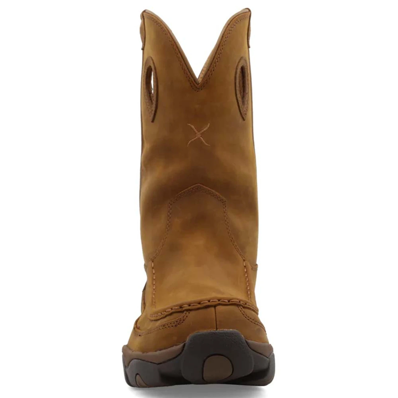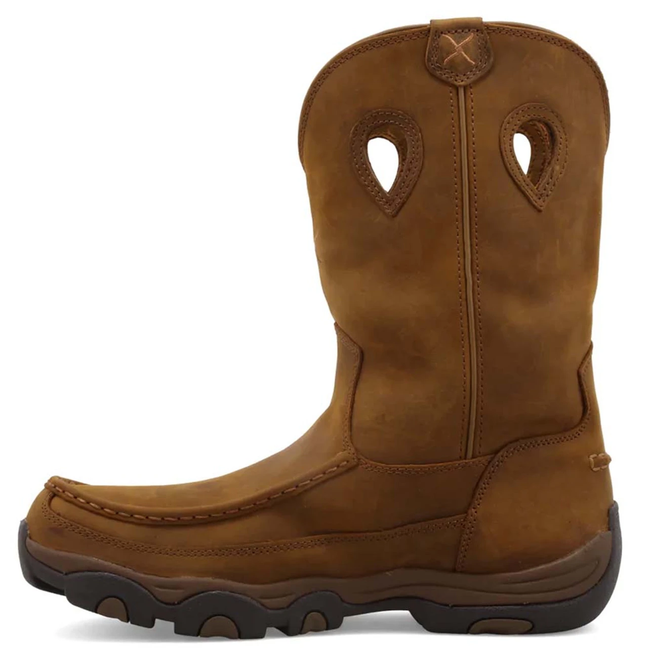 Handcrafted with full grain leathers, this men’s Twisted X pull on hiker boot features waterproof lining that offers breathable comfort. The three quarter length composite insole gives the cushion and support you crave for all day wear. This versatile boot was made with increased functionality making it your new favorite footwear piece.