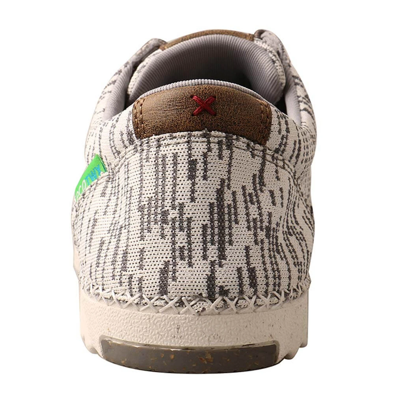 Grab this comfortable men’s casual shoe from Twisted X and make a statement. The Zero-X collection offers an eco-forward stitching design that uses no glue, bamboo laces, and an outsole made with rice husk agricultural by-products. Made with white and grey multi-layered fabric that is lightweight and breathable and made from recycled plastic bottles.