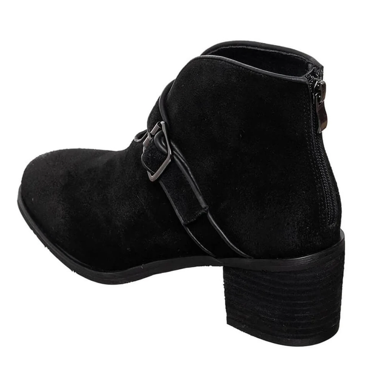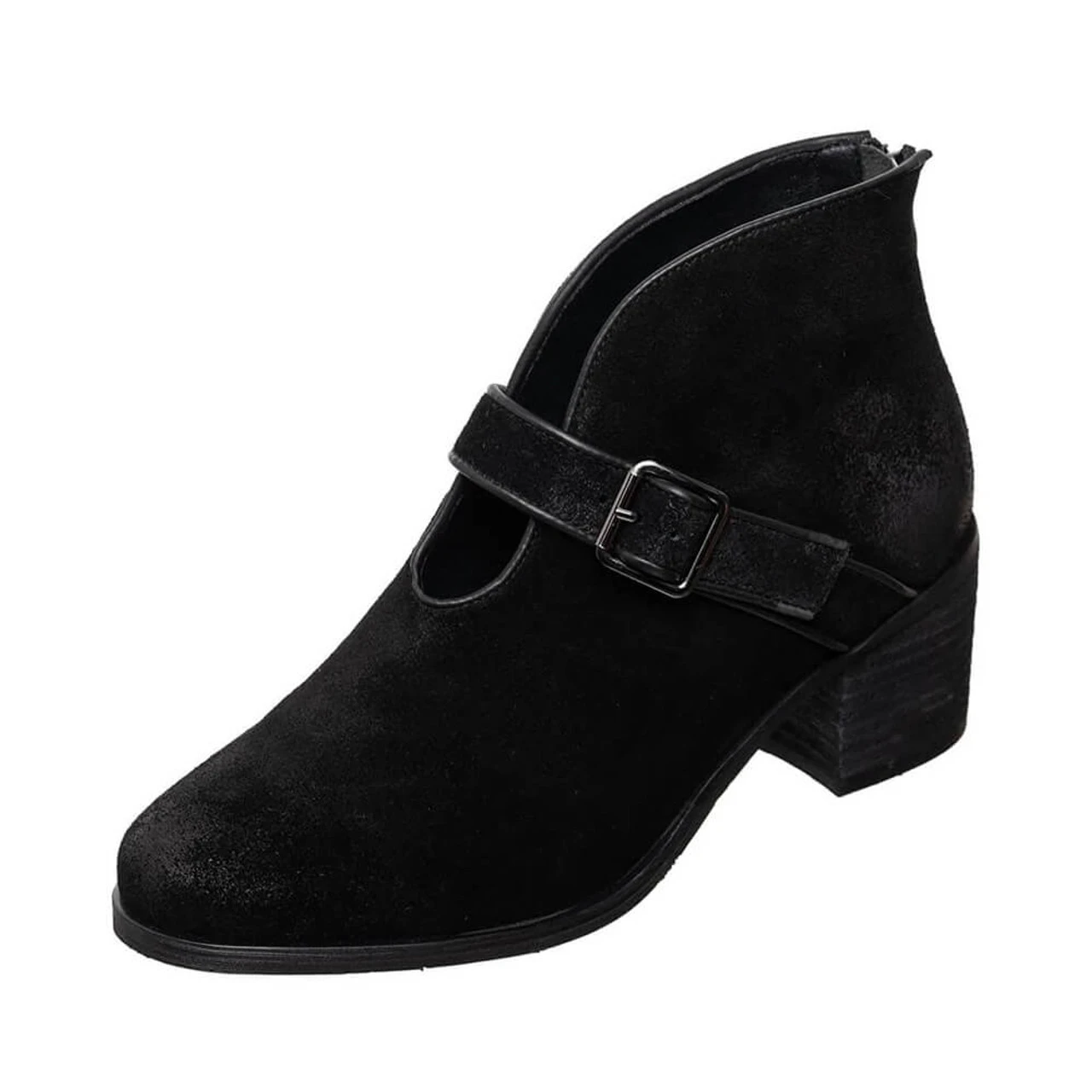 This bootie has a modern Mary Jane style with the buckled strap and 2 inch heel, but the front slit gives it that upgraded look. Have all day comfort in these shoes cushioned latex insole and supportive heel.