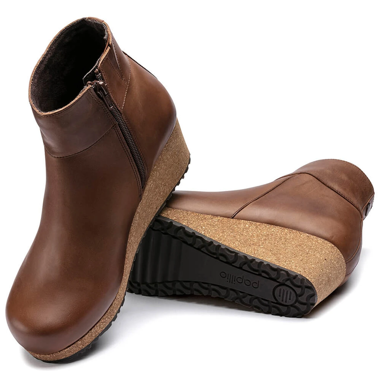 Trendy booties are perfect for fall and this pair is no exception. This leather wedge ankle boot gives some height to your look! Pair it with linen pants or jeans with a stylish top.Â