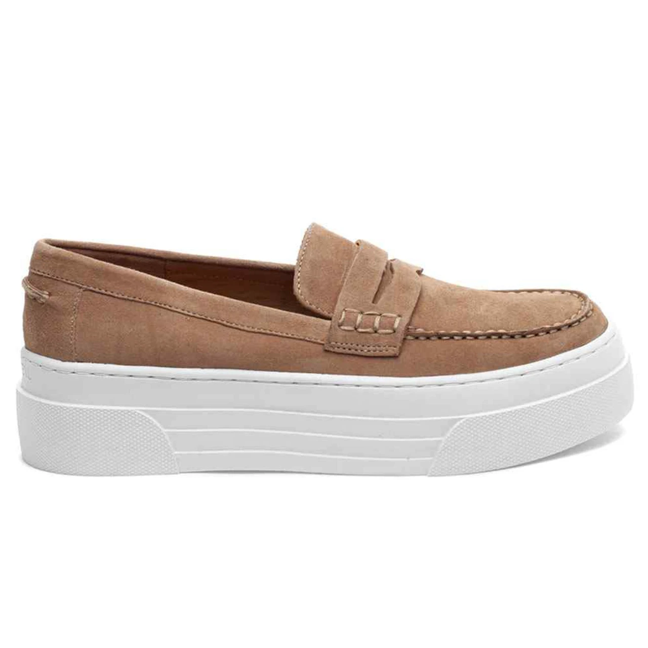 This suede upper platform loafer has a super light platform that provides comfort wherever your day takes you. A unique look with all of the goodness of a sneaker, this shoe easily takes the role of your new staple piece.