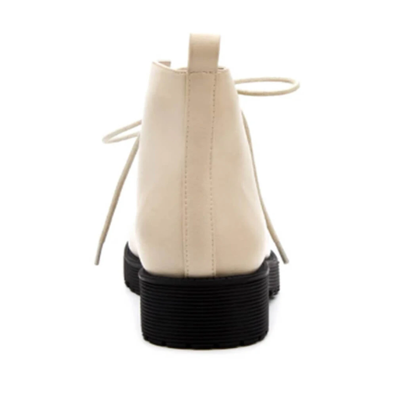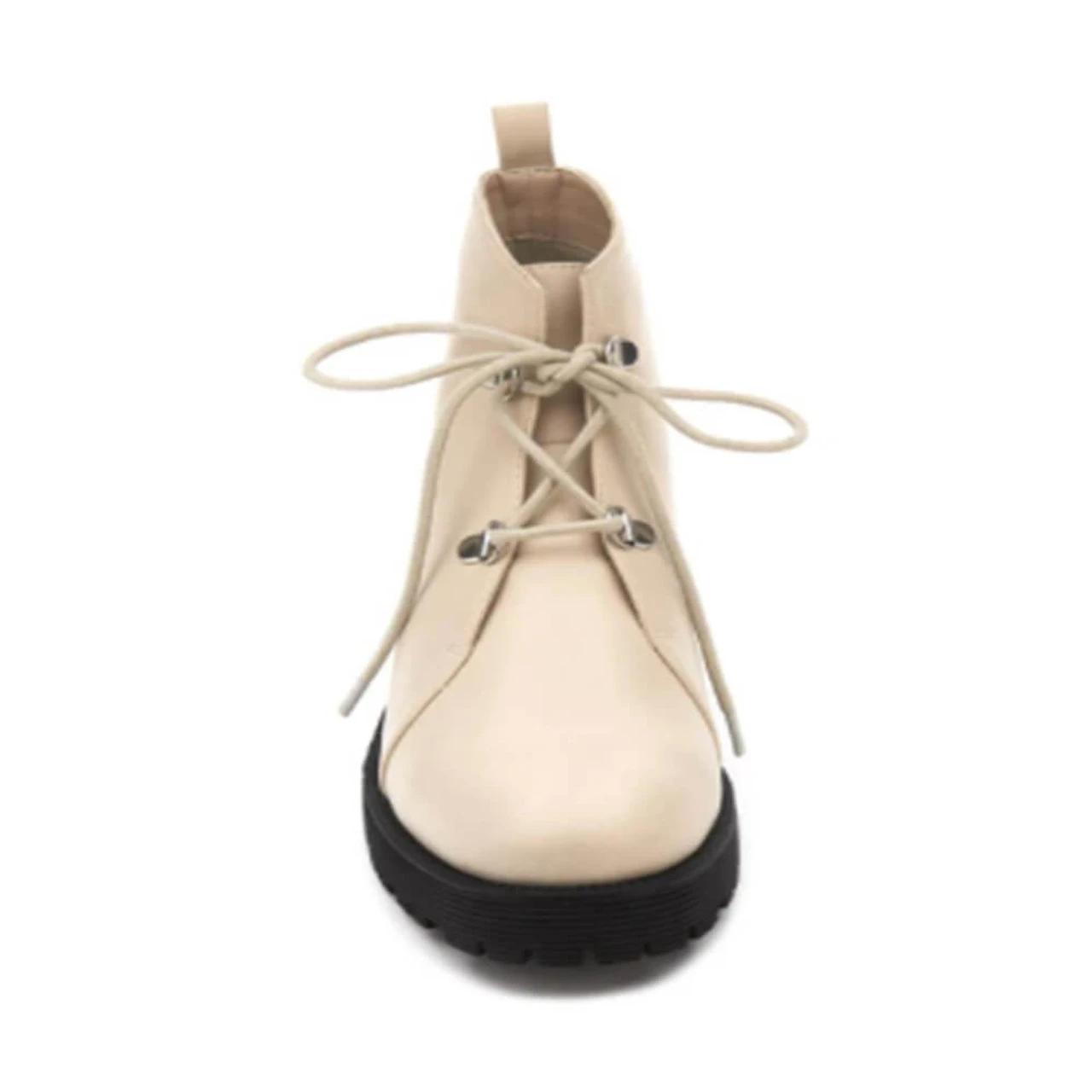 Chunky bottoms really bring these ankle boots to the top of your list of favorite shoes ever. The laces are weaved through metal eyelets adding a nice metalic touch against the sleek material.