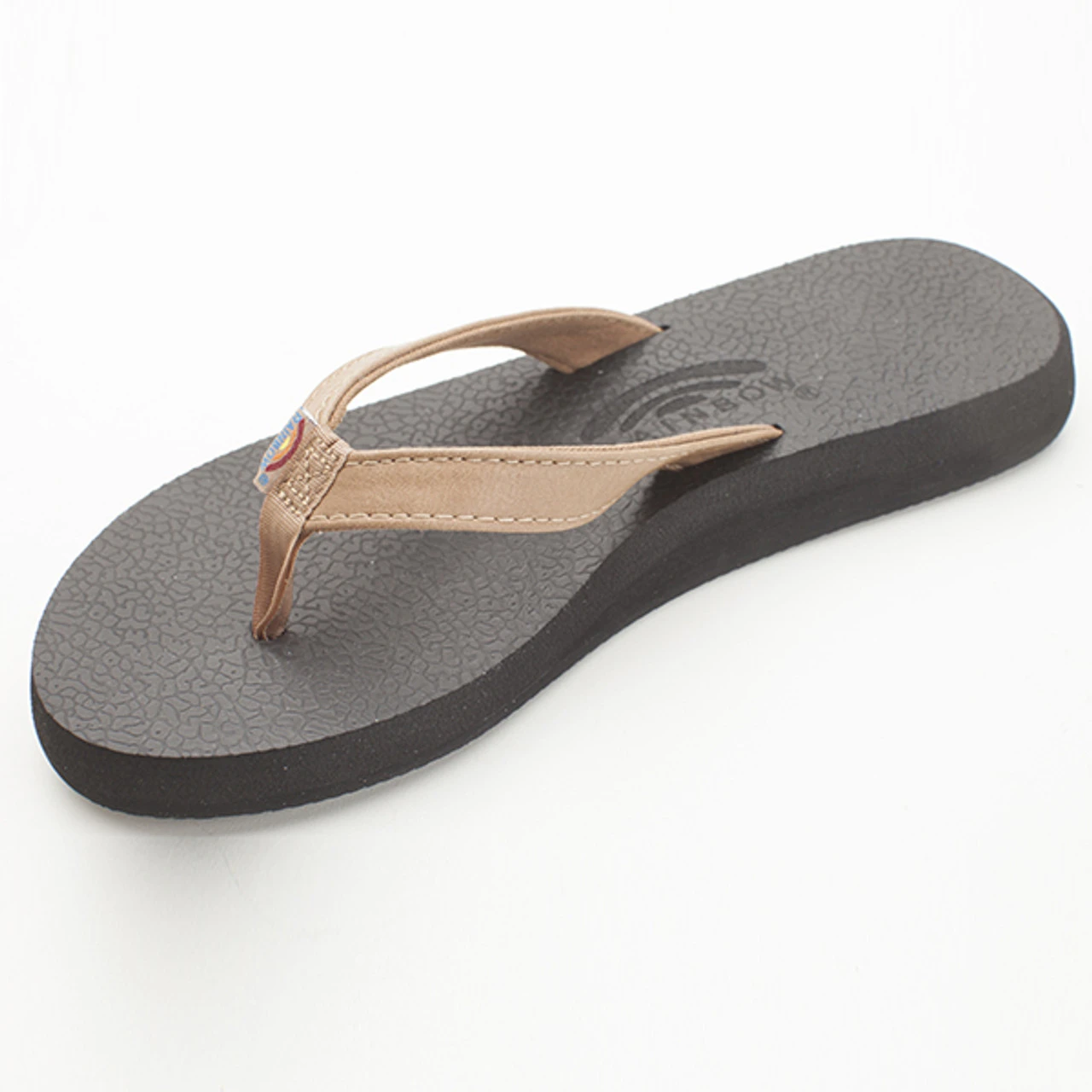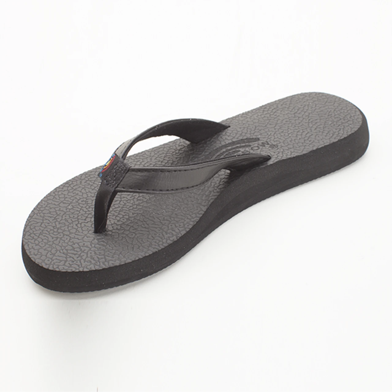 The Cottons has a textured and very soft cushiony top sole, they are ready to wear right off the shelf. The Rainbow® logo is embossed on the top sole, and sits on a slight wedge with an arch. All on the Rainbow® non-slip bottom sole.